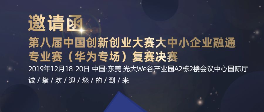 第八届中国创新创业大赛大中小企业融通专业赛(华为专场)复赛决赛邀请函